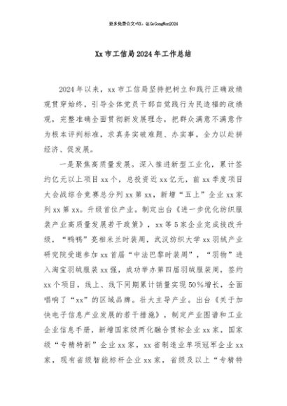 / 【七哥公文】2024年:Xx市工信局2024年工作总结+更多免费公文+VX:QiGeGongWen2024