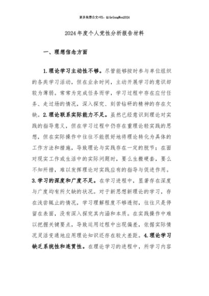 / 【七哥公文】2024年:2024年度个人党性分析报告材料+更多免费公文+VX:QiGeGongWen2024