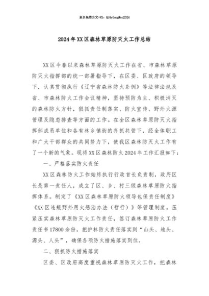 / 【七哥公文】2024年:2024年XX区森林草原防灭火工作总结+更多免费公文+VX:QiGeGongWen2024