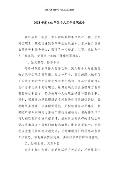 / 【七哥公文】2024年:2024年度xxx单位个人工作述职报告+更多免费公文+VX:QiGeGongWen2024
