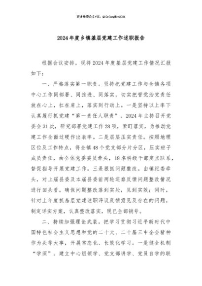 / 【七哥公文】2024年:2024年度乡镇基层党建工作述职报告+更多免费公文+VX:QiGeGongWen2024