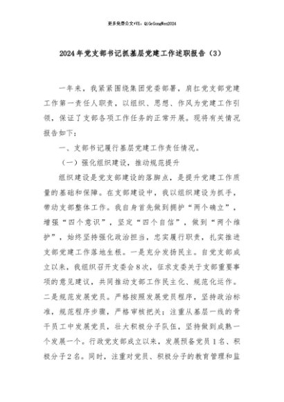/ 【七哥公文】2024年:2024年党支部书记抓基层党建工作述职报告(3)+更多免费公文+VX:QiGeGongWen2024