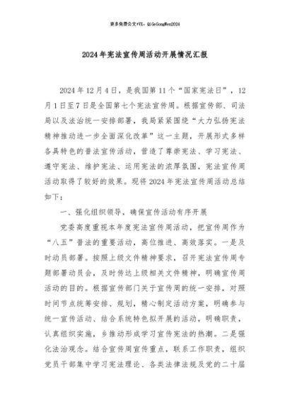 【七哥公文】2024年:2024年宪法宣传周活动开展情况汇报+更多免费公文+VX:QiGeGongWen2024