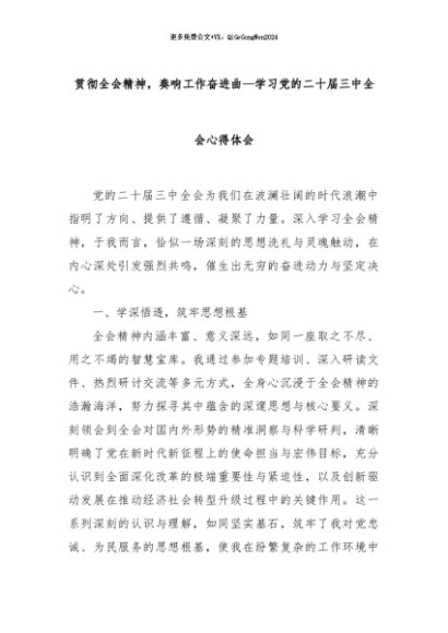 【七哥公文】2024年:贯彻全会精神,奏响工作奋进曲—学习党的二十届三中全会心得体会+更多免费公文+VX:QiGeGongWen2024