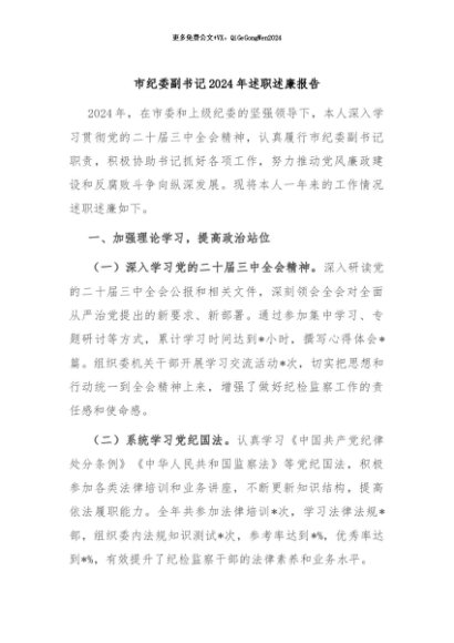 / 【七哥公文】2024年:市纪委副书记2024年述职述廉报告+更多免费公文+VX:QiGeGongWen2024