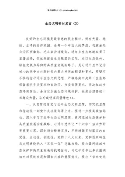 【七哥公文】2024年:生态文明研讨发言(3)+更多免费公文+VX:QiGeGongWen2024