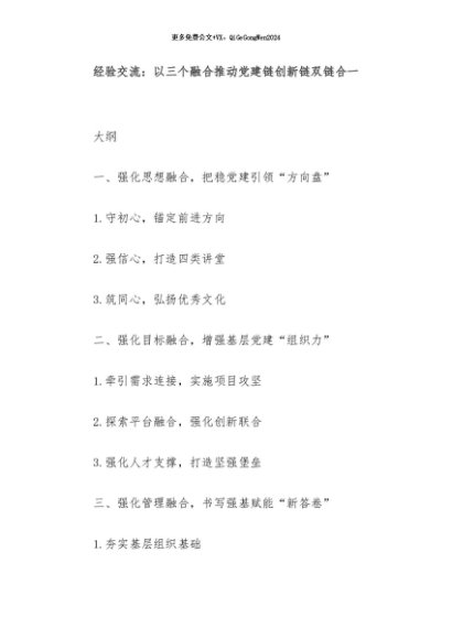 / 【七哥公文】2024年:经验交流:以三个融合推动党建链创新链双链合一+更多免费公文+VX:QiGeGongWen2024