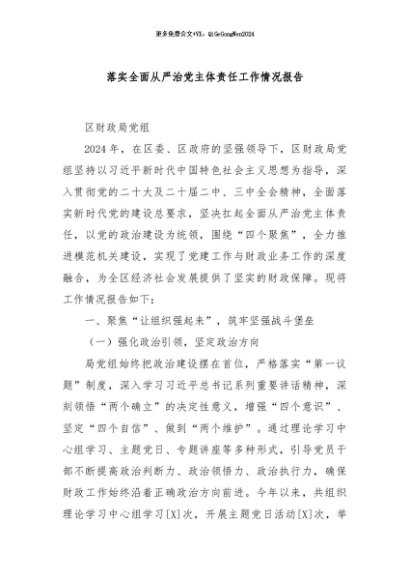/ 【七哥公文】2024年:落实全面从严治党主体责任工作情况报告+更多免费公文+VX:QiGeGongWen2024