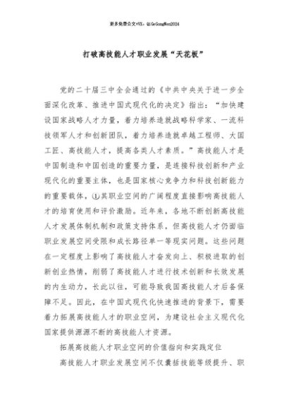 / 【七哥公文】2024年:打破高技能人才职业发展“天花板”+更多免费公文+VX:QiGeGongWen2024