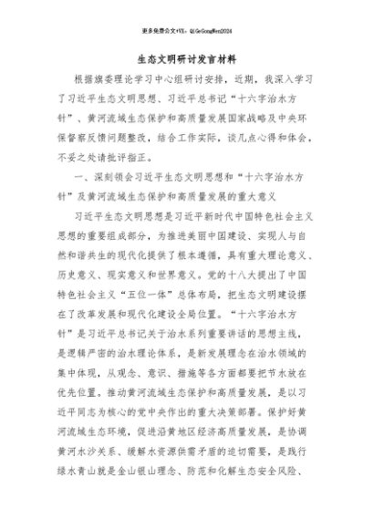 【七哥公文】2024年:生态文明研讨发言材料+更多免费公文+VX:QiGeGongWen2024