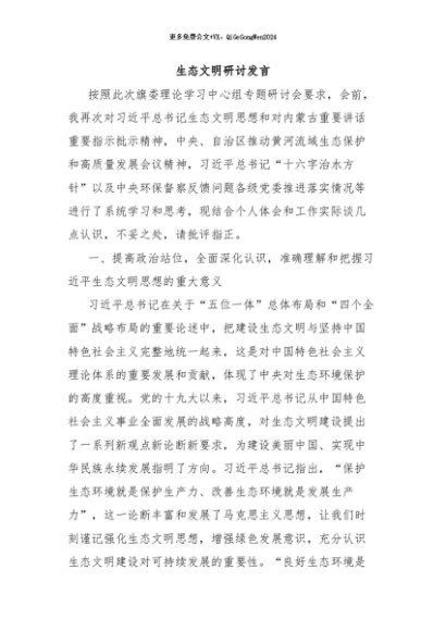 【七哥公文】2024年:生态文明研讨发言材料+更多免费公文+VX:QiGeGongWen2024