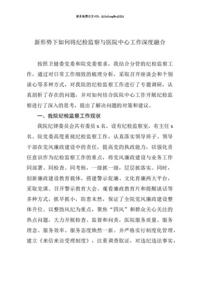 / 【七哥公文】2024年:某市公立医院纪委书记专项工作调研报告+更多免费公文+VX:QiGeGongWen2024