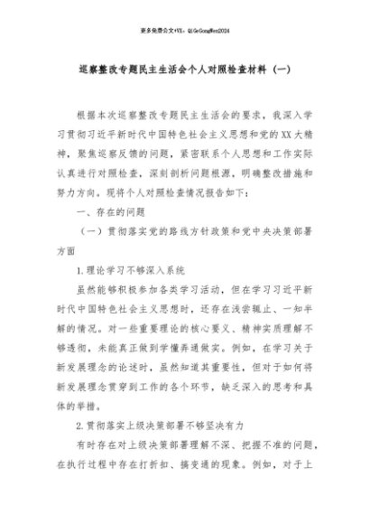 / 【七哥公文】2024年:巡察整改专题民主生活会个人对照检查材料 (一)+更多免费公文+VX:QiGeGongWen2024