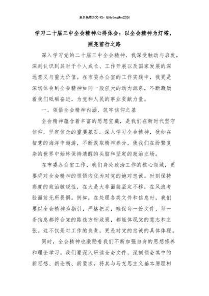 【七哥公文】2024年:学习二十届三中全会精神心得体会:以全会精神为灯塔,照亮前行之路+更多免费公文+VX:QiGeGongWen2024