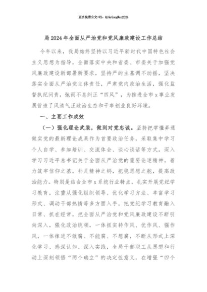 / 【七哥公文】2024年:局2024年全面从严治党和党风廉政建设工作总结+更多免费公文+VX:QiGeGongWen2024