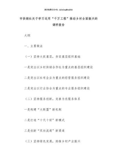 【七哥公文】2024年:市供销社关于学习运用“千万工程”推动乡村全面振兴的调研报告+更多免费公文+VX:QiGeGongWen2024