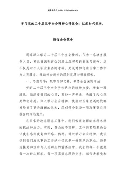 【七哥公文】2024年:学习党的二十届三中全会精神心得体会:扛起时代担当,践行全会使命+更多免费公文+VX:QiGeGongWen2024