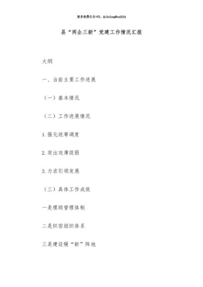 / 【七哥公文】2024年:县“两企三新”党建工作情况汇报+更多免费公文+VX:QiGeGongWen2024