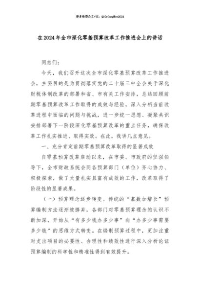 【七哥公文】2024年:在2024年全市深化零基预算改革工作推进会上的讲话+更多免费公文+VX:QiGeGongWen2024