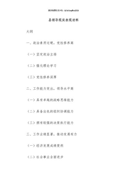 / 【七哥公文】2024年:县领导现实表现材料+更多免费公文+VX:QiGeGongWen2024