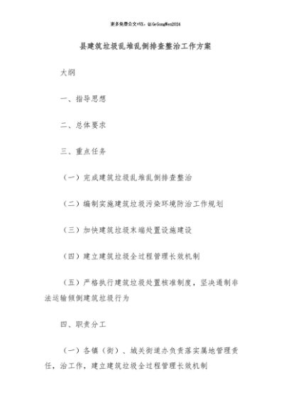 / 【七哥公文】2024年:县建筑垃圾乱堆乱倒排查整治工作方案+更多免费公文+VX:QiGeGongWen2024