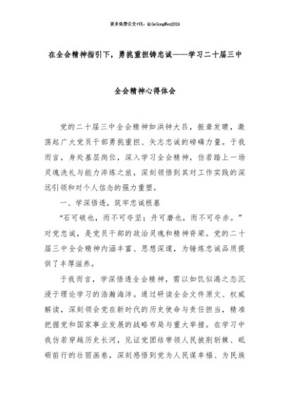 【七哥公文】2024年:在全会精神指引下,勇挑重担铸忠诚——学习二十届三中全会精神心得体会+更多免费公文+VX:QiGeGongWen2024