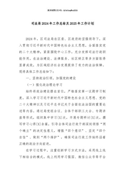 【七哥公文】2024年:司法局 2024 年工作总结及 2025 年工作计划+更多免费公文+VX:QiGeGongWen2024