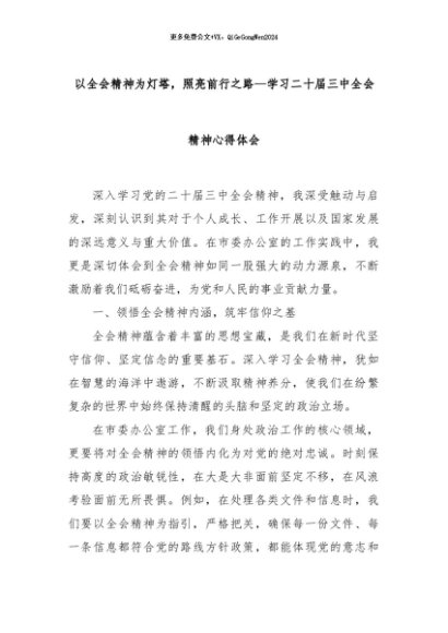 【七哥公文】2024年:以全会精神为灯塔,照亮前行之路—学习二十届三中全会精神心得体会+更多免费公文+VX:QiGeGongWen2024