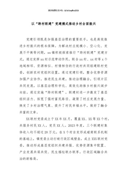 / 【七哥公文】2024年:以“跨村联建”党建模式推动乡村全面振兴+更多免费公文+VX:QiGeGongWen2024