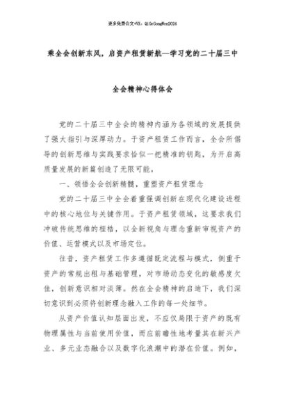 【七哥公文】2024年:乘全会创新东风,启资产租赁新航—学习党的二十届三中全会精神心得体会+更多免费公文+VX:QiGeGongWen2024