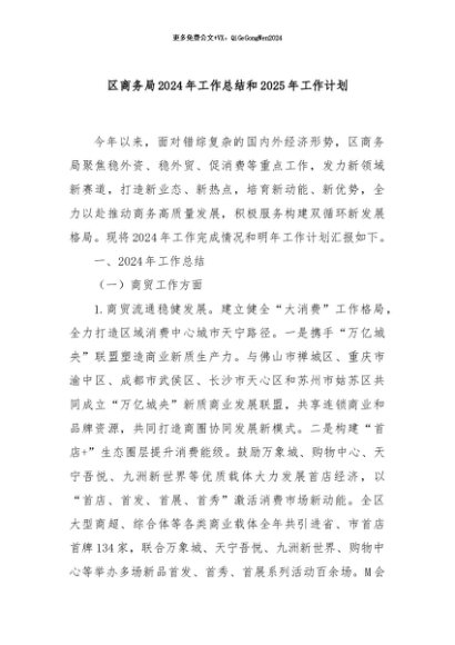 / 【七哥公文】2024年:区商务局2024年工作总结和2025年工作计划+更多免费公文+VX:QiGeGongWen2024