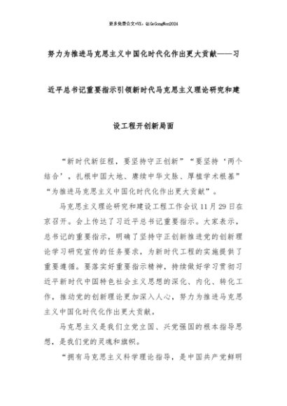 【七哥公文】2024年:努力为推进马克思主义中国化时代化作出更大贡献——习总书记重要指示引领新时代马克思主义理论研究和建设工程开创新局面+更多免费公文+VX:QiGeGongWen2024