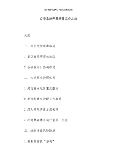 / 【七哥公文】2024年:公安系统开展禁毒工作总结+更多免费公文+VX:QiGeGongWen2024