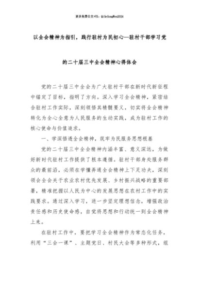 【七哥公文】2024年:以全会精神为指引,践行驻村为民初心—驻村干部学习党的二十届三中全会精神心得体会+更多免费公文+VX:QiGeGongWen2024