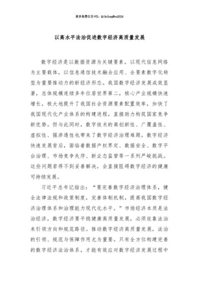 / 【七哥公文】2024年:以高水平法治促进数字经济高质量发展+更多免费公文+VX:QiGeGongWen2024