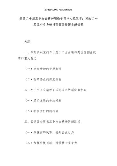 【七哥公文】2024年:党的二十届三中全会精神理论学习中心组发言:党的二十届三中全会精神引领国资国企新征程+更多免费公文+VX:QiGeGongWen2024