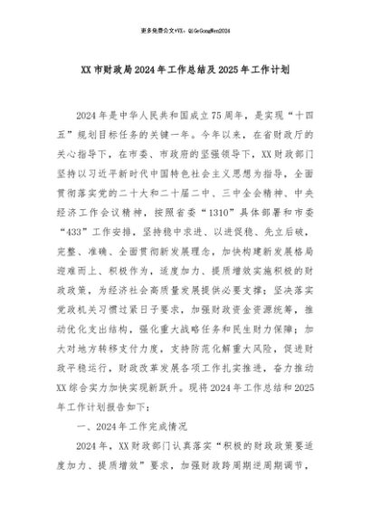 【七哥公文】2024年:XX市财政局2024年工作总结及2025年工作计划+更多免费公文+VX:QiGeGongWen2024