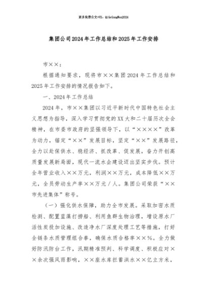 / 【七哥公文】2024年:集团公司2024年工作总结和2025年工作安排+更多免费公文+VX:QiGeGongWen2024