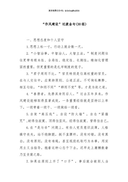/ 【七哥公文】2024年:(30组)“作风建设”过渡金句+更多免费公文+VX:QiGeGongWen2024