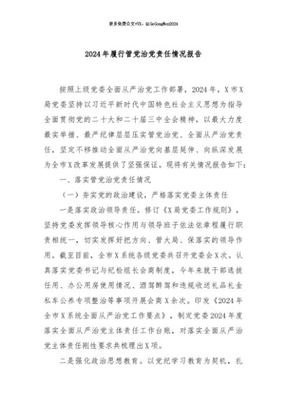 / 【七哥公文】2024年:2024年履行管党治党责任情况报告+更多免费公文+VX:QiGeGongWen2024