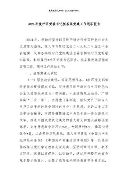 / 【七哥公文】2024年:2024年度社区党委书记抓基层党建工作述职报告+更多免费公文+VX:QiGeGongWen2024
