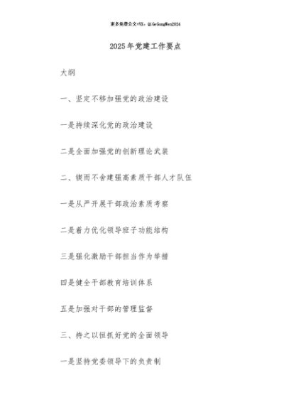 / 【七哥公文】2024年:2025年党建工作要点+更多免费公文+VX:QiGeGongWen2024