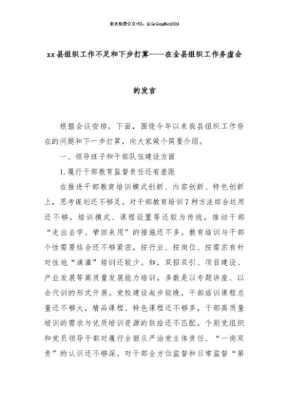 【七哥公文】2024年:xx县组织工作不足和下步打算——在全县组织工作务虚会的发言+更多免费公文+VX:QiGeGongWen2024