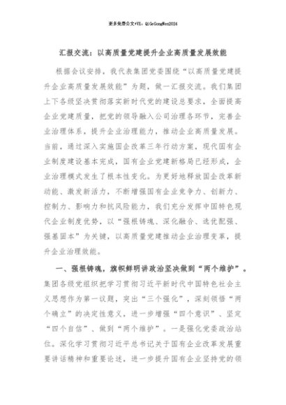 / 【七哥公文】2024年:汇报交流:以高质量党建提升企业高质量发展效能+更多免费公文+VX:QiGeGongWen2024