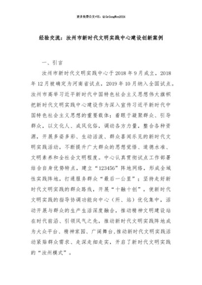 / 【七哥公文】2024年:经验交流:汝州市新时代文明实践中心建设创新案例+更多免费公文+VX:QiGeGongWen2024