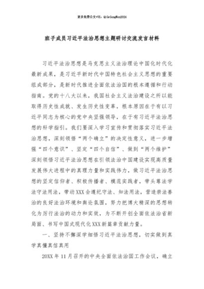 / 【七哥公文】2024年:班子成员习近平法治思想主题研讨交流发言材料+更多免费公文+VX:QiGeGongWen2024