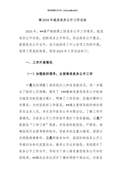 / 【七哥公文】2024年:镇2024年基层政务公开工作总结+更多免费公文+VX:QiGeGongWen2024
