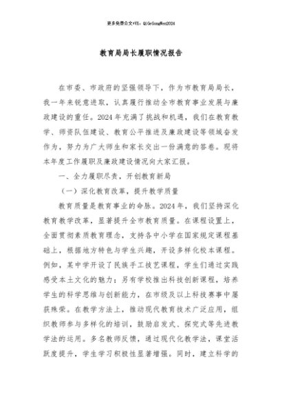 / 【七哥公文】2024年:教育局局长履职情况报告+更多免费公文+VX:QiGeGongWen2024