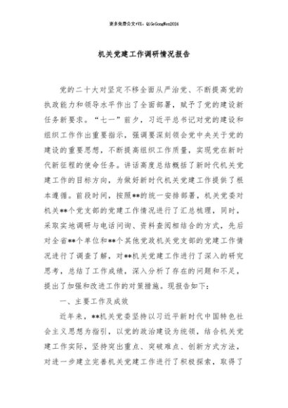 / 【七哥公文】2024年:机关党建工作调研情况报告+更多免费公文+VX:QiGeGongWen2024