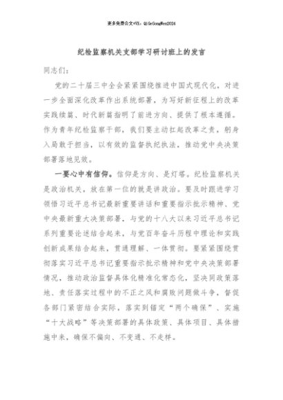 / 【七哥公文】2024年:纪检监察机关支部学习研讨班上的发言+更多免费公文+VX:QiGeGongWen2024